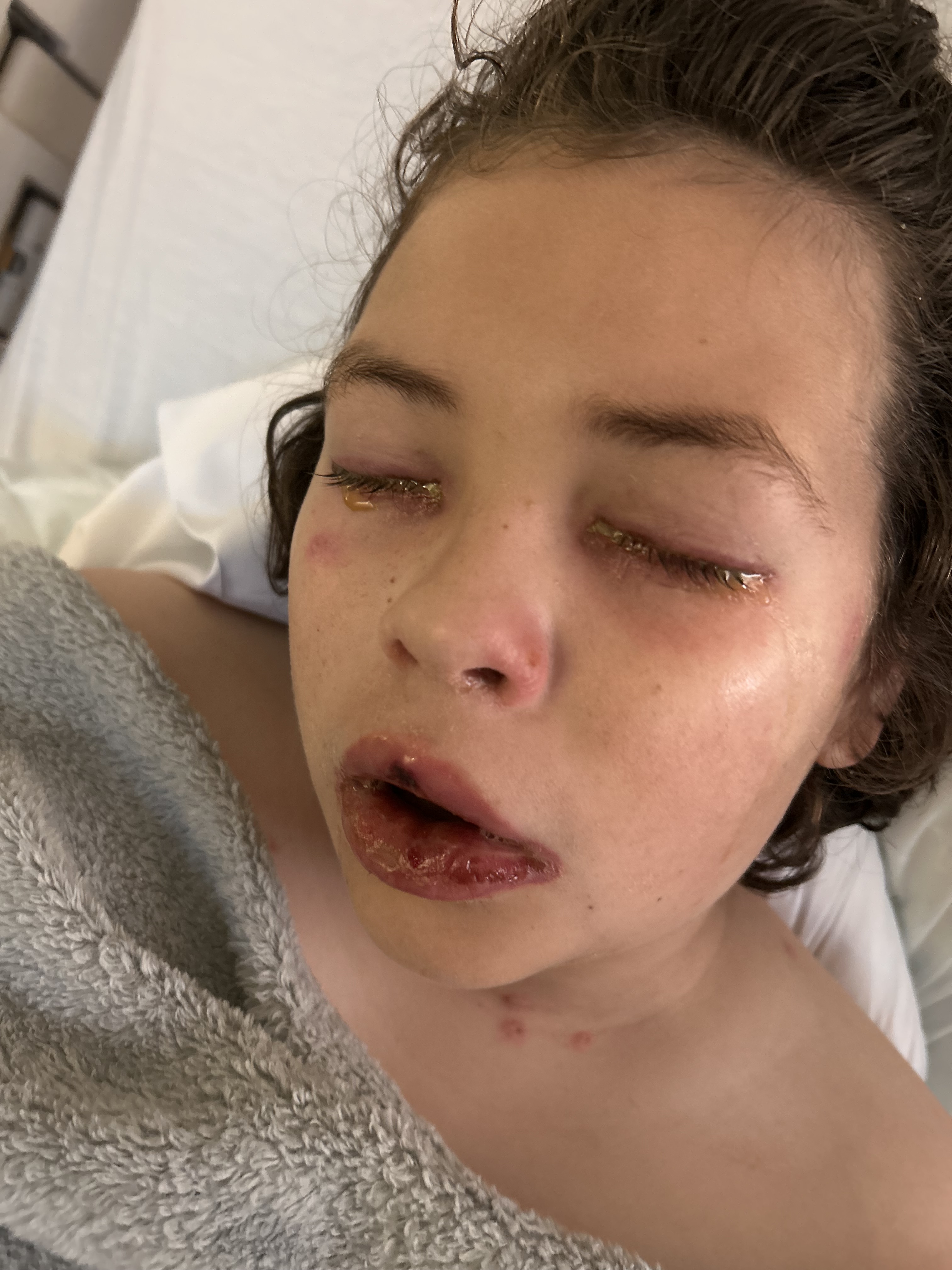 This time, the symptoms were more severe –not only affecting his mouth, throat, and genitals, but also affecting his eyes, lungs, and 5% of his skin.